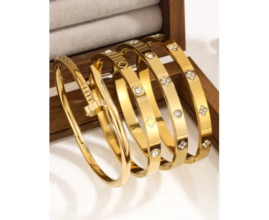 Set elegant „Quarteto”, compus din 4 brățări din oțel titan de înaltă calitate, fiecare cu un design distinct, dar perfect armonizat. Brățările sunt finisate cu lustru în oglindă și placate cu vid, oferind rezistență superioară la uzură și estompare. Stilul clasic-modern le face ușor de asortat atât pentru purtare zilnică, cât și pentru ocazii speciale. Materialul durabil, aspectul rafinat și varietatea modelelor transformă acest set într-o alegere ideală pentru un look elegant.
