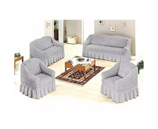 Set 4 huse 3211, pentru canapea 3 locuri, canapea 2 locuri si 2 fotolii Gri Deschis- HSE02