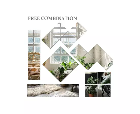Oglindă decorativă autoadezivă din material acrilic. Ideal ca și element de decorațiune interioară.