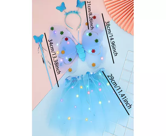 Set 4 Piese, Aripi de Fluture cu Luminite, Albastru, 2-4 ani - 59134