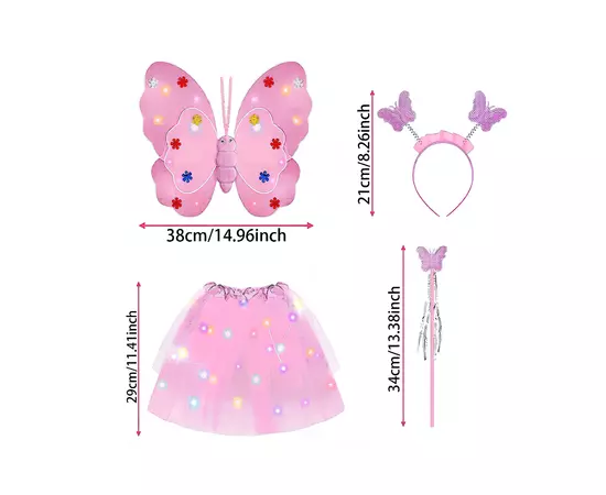 Set 4 Piese, Aripi de Fluture cu Luminite, Roz 2-4 ani - 15936