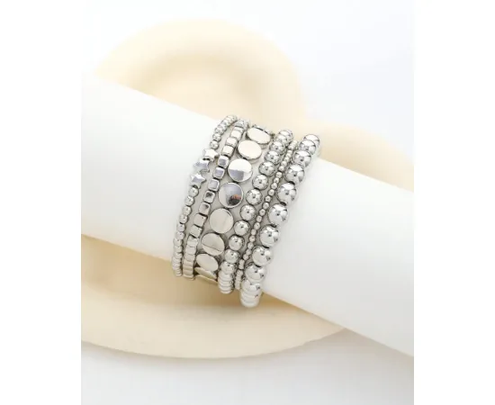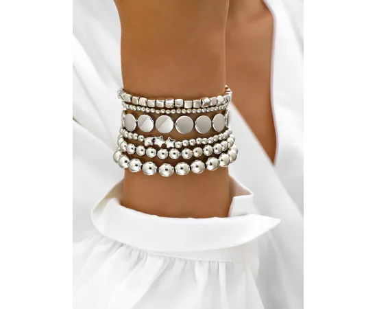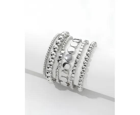 Set 6 Bratari cu Margele, Elastice, Argintiu - 637628