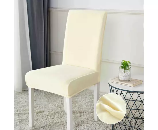 Set 6 Huse Elastice pentru Scaun, Catifea, Unt-JO224