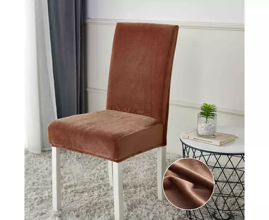 Set 6 Huse Elastice pentru Scaun, Catifea,Maro Deschis -JO235
