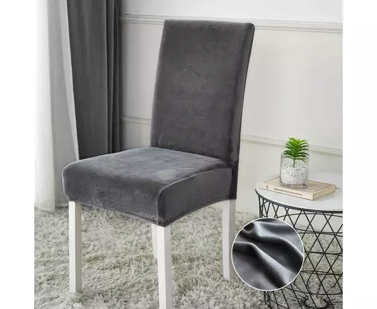 Set 6 Huse Elastice pentru Scaun, Catifea, Gri-JO233