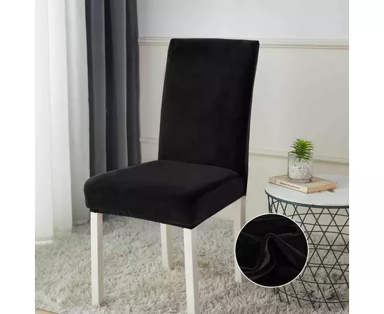 Set 6 Huse Elastice pentru Scaun, Catifea,Negru-JO228