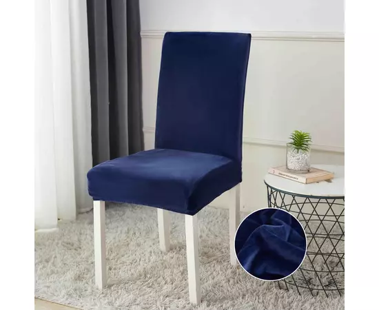 Set 6 Huse Elastice pentru Scaun, Catifea,Bleumarin-JO227