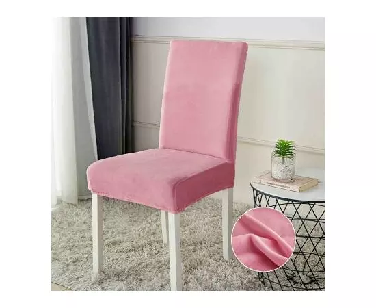 Set 6 Huse Elastice pentru Scaun, Catifea,Roz -JO236
