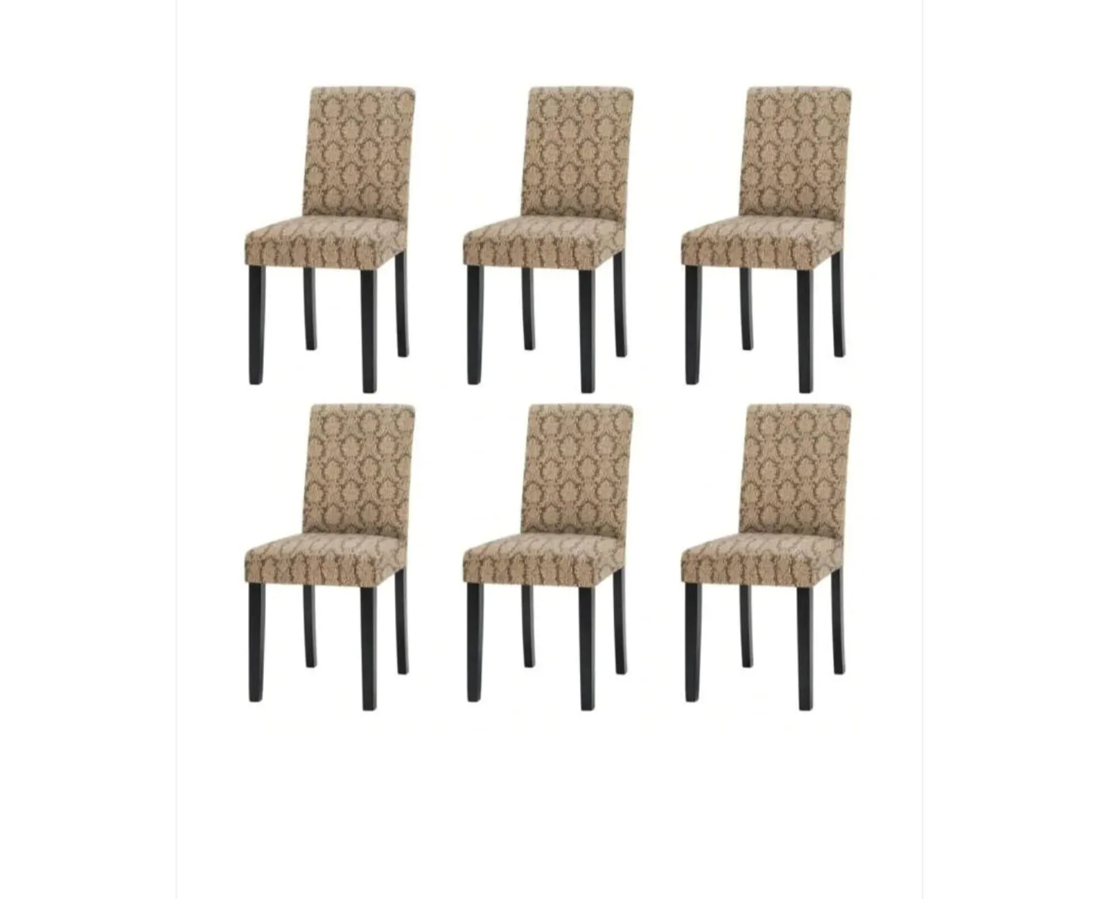 Setul conține 6 huse pentru scaune, realizate din material jacquard de calitate superioară, cu un design rafinat. Textura ușor elastică și modelul ornamental oferă un aspect elegant și se potrivesc perfect atât în dining, cât și în living sau pentru evenimente speciale.