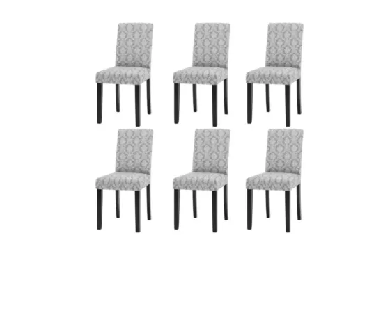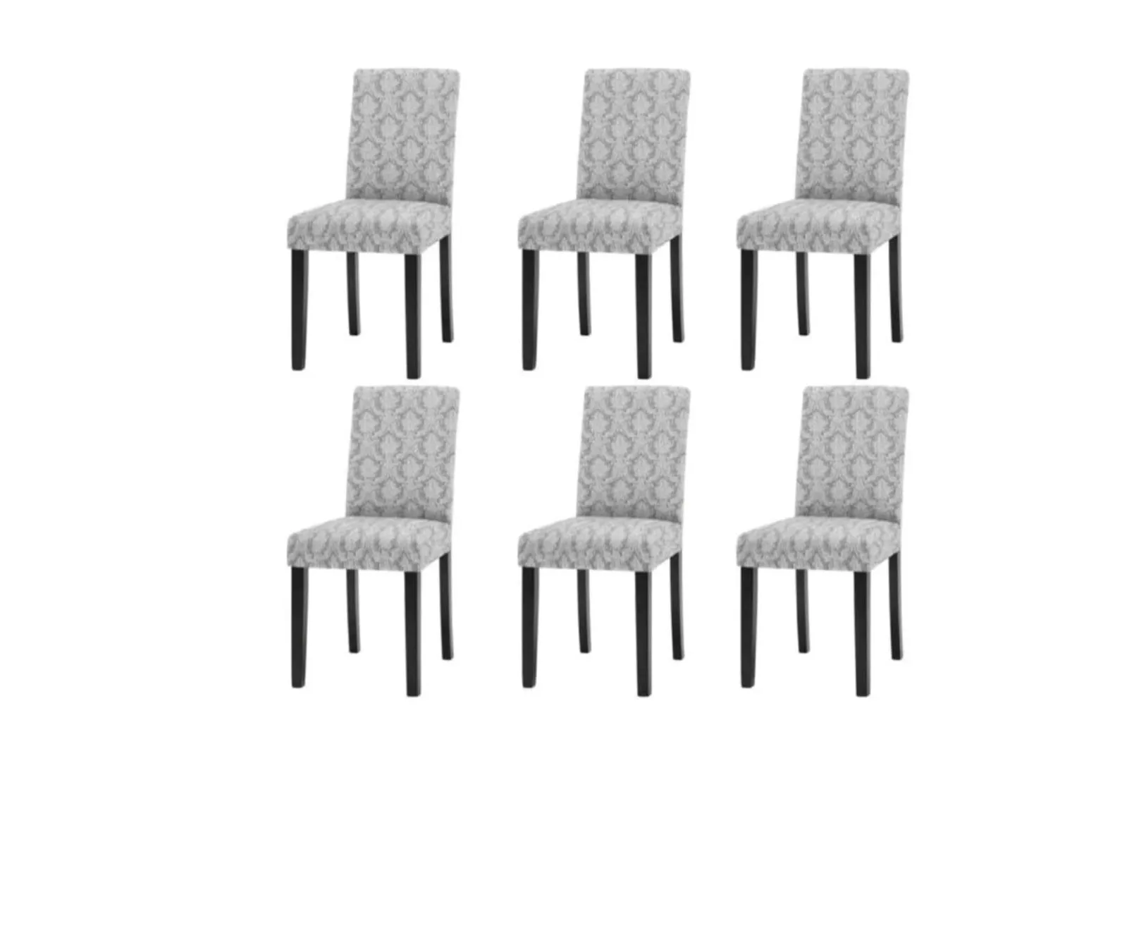 Setul conține 6 huse pentru scaune, realizate din material jacquard de calitate superioară, cu un design rafinat. Textura ușor elastică și modelul ornamental oferă un aspect elegant și se potrivesc perfect atât în dining, cât și în living sau pentru evenimente speciale.