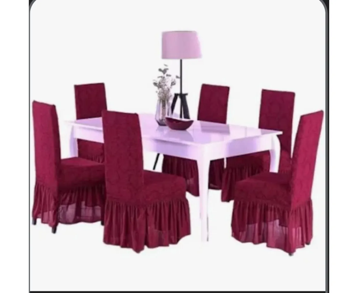 Setul conține 6 huse pentru scaune, realizate din material jacquard de calitate superioară, cu un design rafinat. Textura ușor elastică și modelul ornamental oferă un aspect elegant și se potrivesc perfect atât în dining, cât și în living sau pentru evenimente speciale.