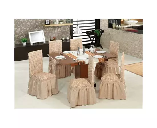 Set 6 huse scaune cu volane din bumbac elasticizat, Bone - HEP75