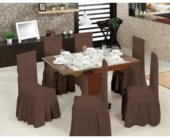 Set 6 huse scaune cu volane din bumbac elasticizat - HEP86