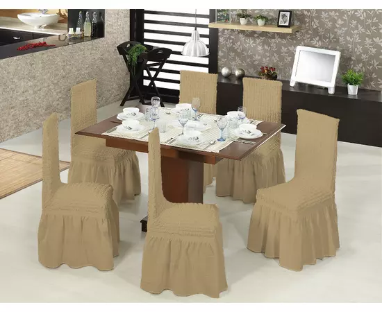 Set 6 huse scaune cu volane din bumbac elasticizat - HEP87