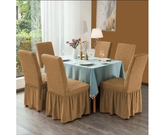 Set 6 huse scaune cu volane din bumbac elasticizat, Bej - HEP89
