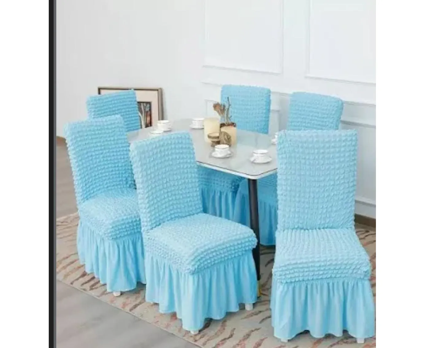 Set 6 huse scaune cu volane din bumbac elasticizat, Blue - HEP91