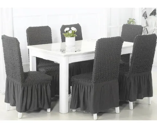Set 6 huse scaune cu volane din bumbac elasticizat, Gri - HEP92