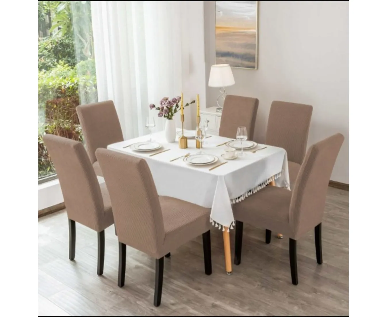 Set 6 huse scaune fara volane, Lycra, 55 x 45 cm, Bone - AHM28