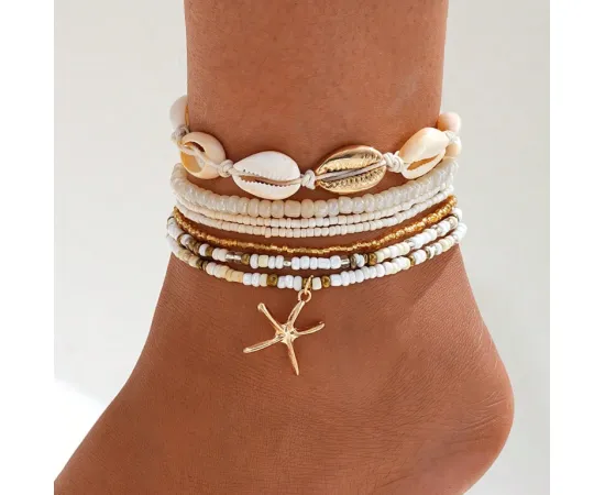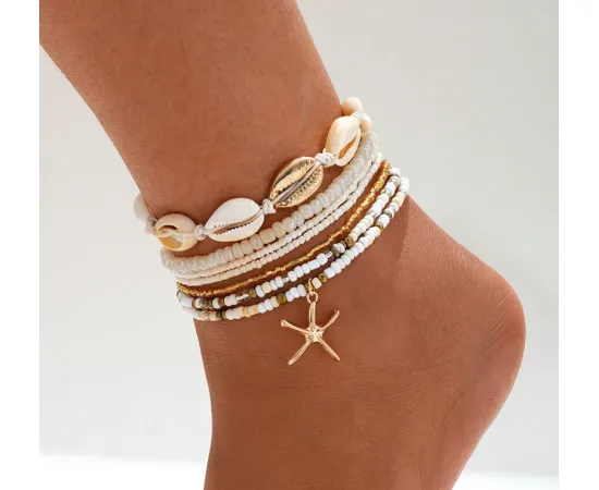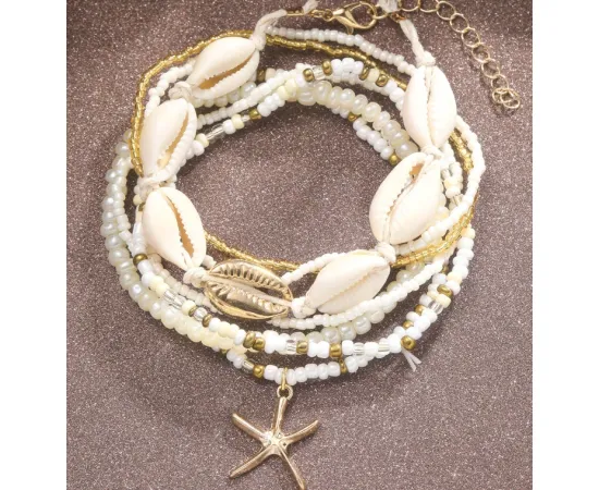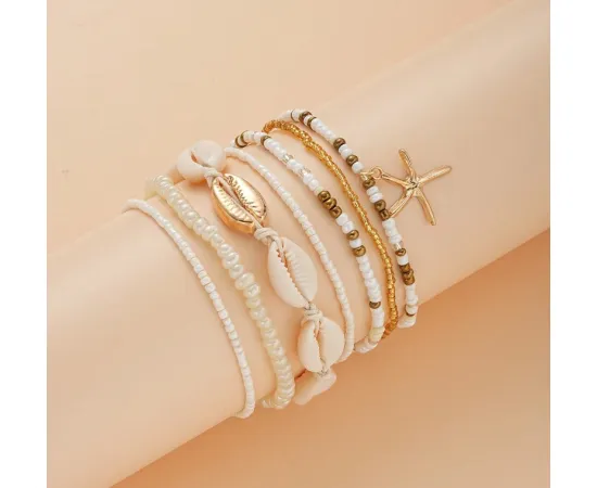 Set 7 Brățări Boho de Plajă cu Mărgele și Pandantiv Stea de Mare - 290339