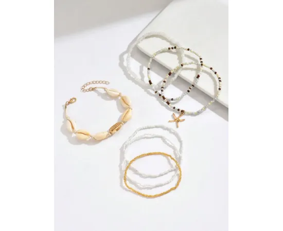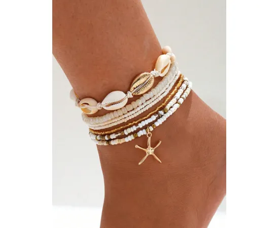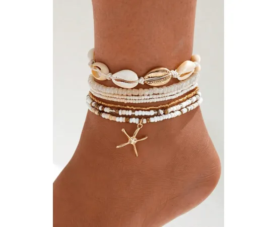 Set 7 Brățări de Gleznă Boho cu Scoici și Stea de Mare - 623343