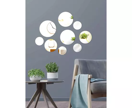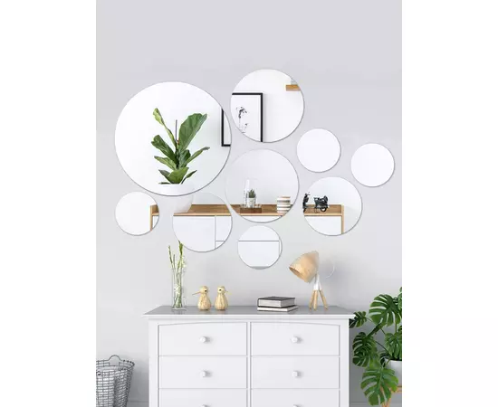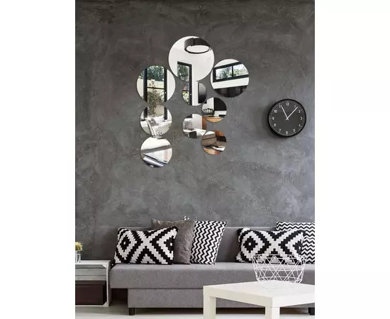 Set 9 Oglinzi Deorative Audoadezive, Forma Circulara, Diametru 10, 15, 18 si 20 cm