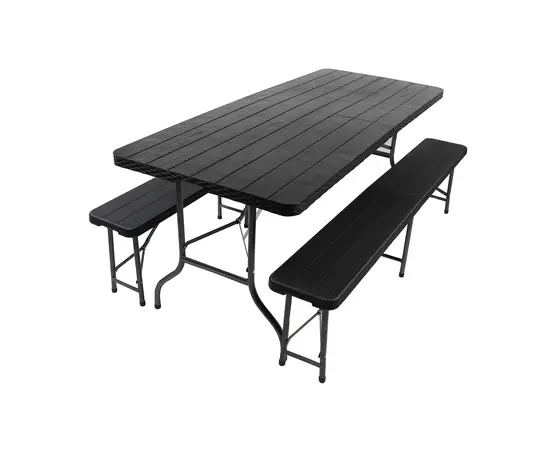 Principalul avantaj al acestui set este posibilitatea de a plia atat masa cat si bancile, ceea ce faciliteaza transportul si reduce considerabil spatiul necesar pentru depozitare.