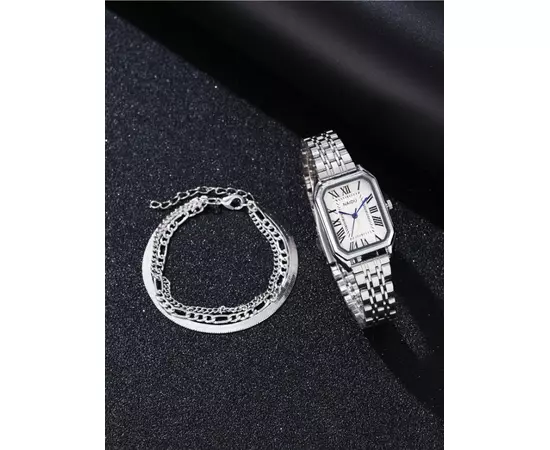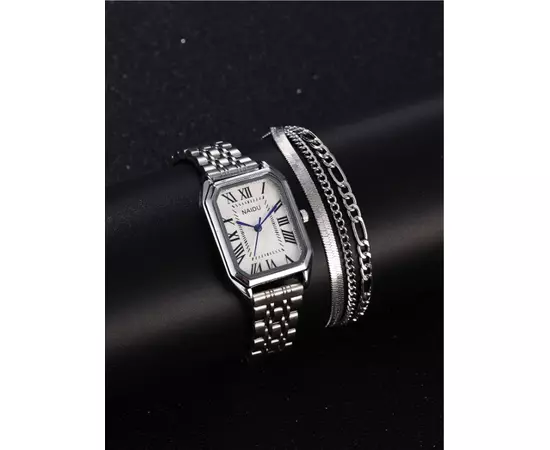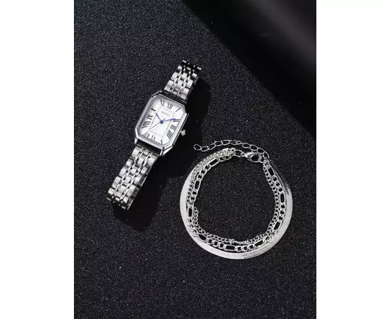 Set Bijuterii 4 Piese, Ceas si Trei Bratari, Argintiu - 81028