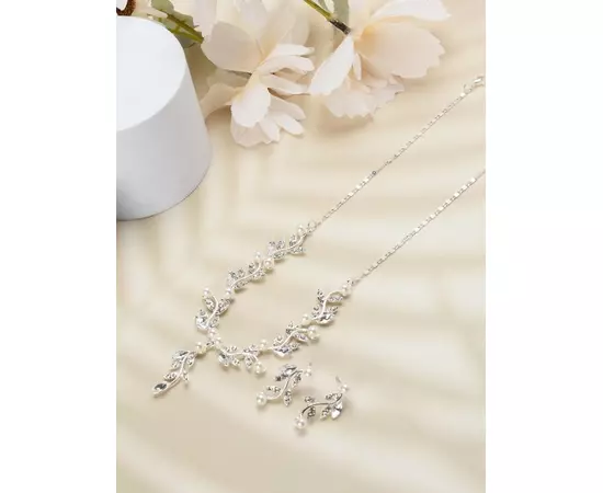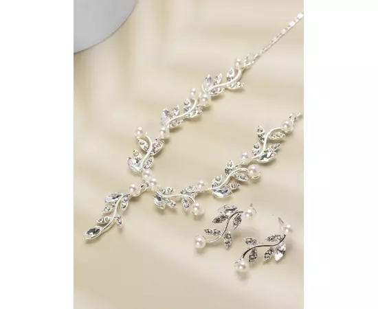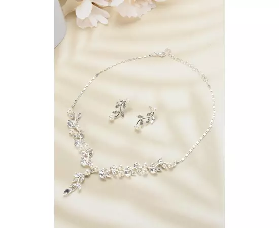 Set Bijuterii Cu Strasuri 3 Piese, Colier si Cercei Argintiu - 26213