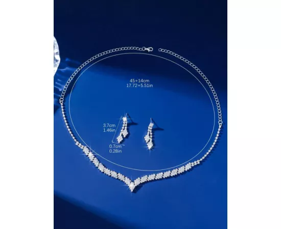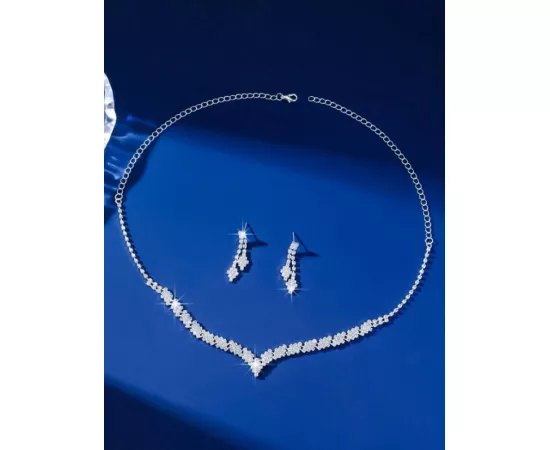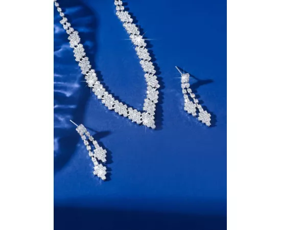 Set Bijuterii Cu Strasuri 3 Piese, Colier si Cercei, Argintiu - 92983