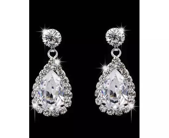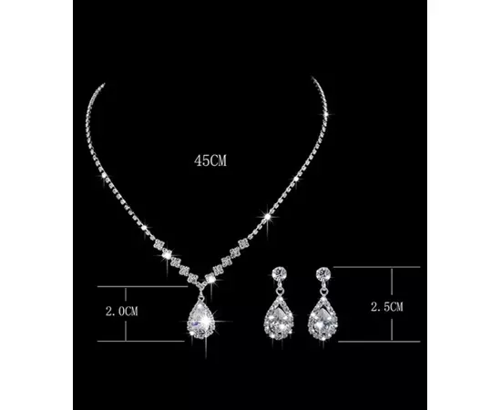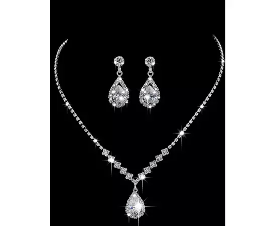 Set Bijuterii Cu Strasuri 3 Piese, Colier si Cercei Argintiu-19111