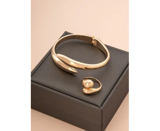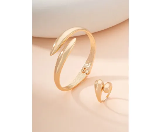 Set Brățara și Inel Alure, Design Geometric, Auriu - 637302