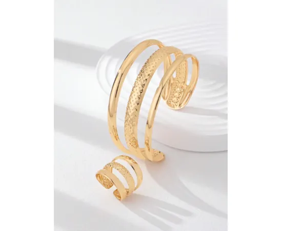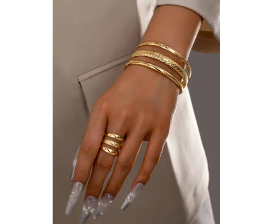 Set Bratara Manseta si Inel Gros, Auriu - 356157