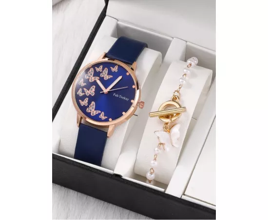 Set Ceas si Bratara, Albastru cu auriu