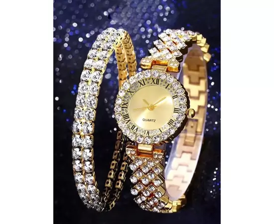 Material carcasă ceas:aliaj de zinc Detalii: Stras Gen: Femei Tip: Set de ceas Cutii incluse: Nu Rezistență la apă: nu este rezistent la apă Sursă de alimentare pentru ceasuri cu quartz: cu baterii (baterii incluse) Culoarea curelei: Auriu Material curelei: aliaj de zinc Mișcare: Cuarț Forma ceas: rotundă