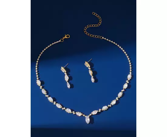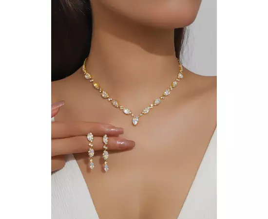 Set Cercei si Colier, cu Zirconiu, Auriu - 075555