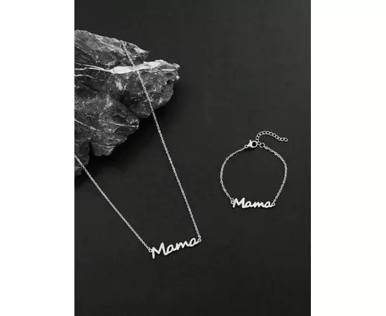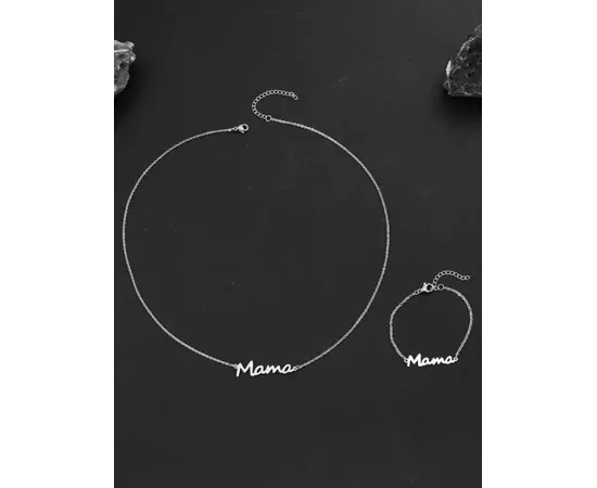 Set Colier Si Bratara Argintiu Din Otel Inoxidabil "Mama" - 02002