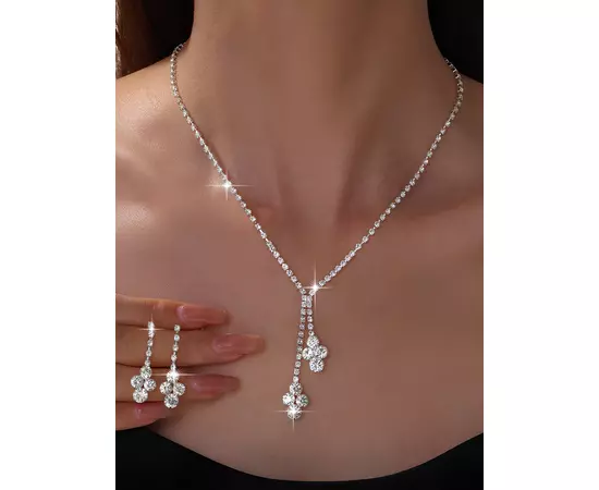 Setul de colier, brățară și cercei din zirconiu cu strasuri, de culoare argintie, este o alegere elegantă și rafinată pentru orice ocazie specială. Iată o descriere detaliată a acestui set: