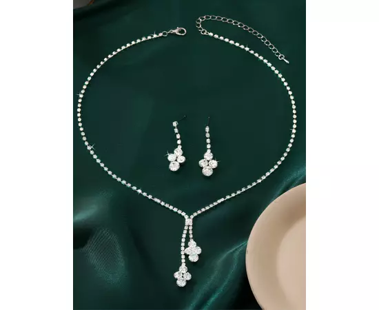 Acest set de colier, brățară și cercei din zirconiu cu strasuri, argintiu, este o alegere ideală pentru cei care doresc să adauge un strop de eleganță și strălucire ținutelor lor, fiind totodată un cadou minunat pentru ocazii speciale.