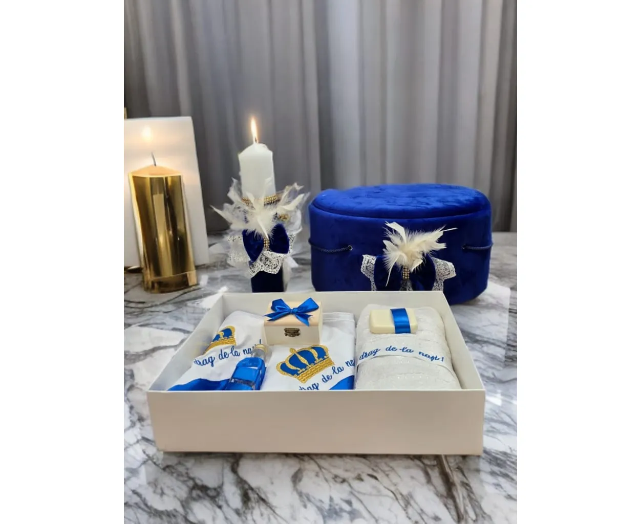 Set complet cu Trusou Botez + Cutie Buretata pentru hainute + Lumanare - TB922