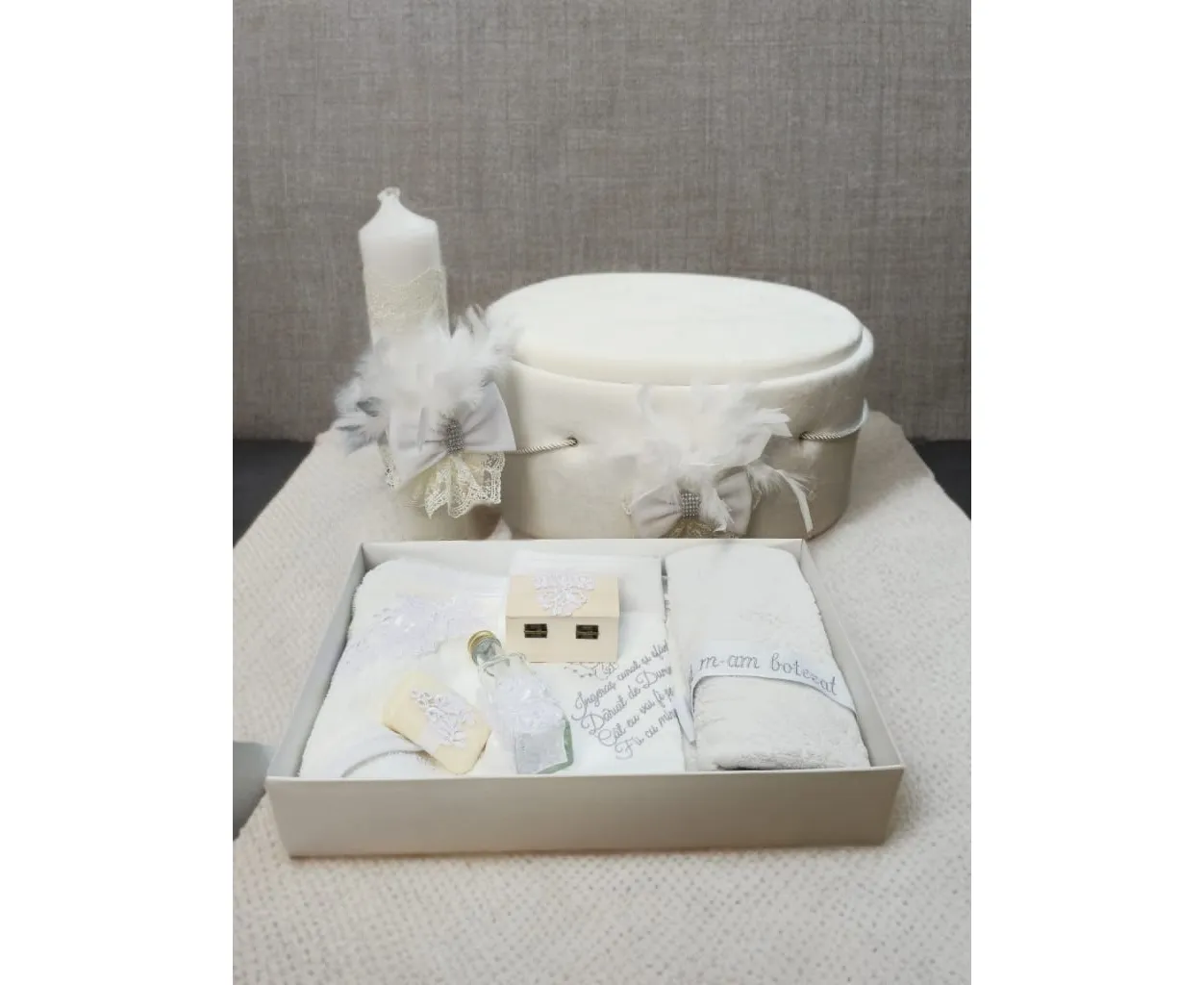 Set complet cu Trusou Botez + Cutie Buretata pentru hainute + Lumanare - TB925