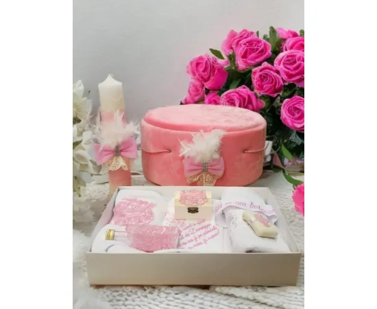 Deoarece botezul este un eveniment important pentru parinti si nasi, venim in ajutor cu un set care contine toate cele necesare pentru crestinarea bebelusului
