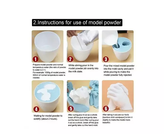 Procesul de turnare este simplu și rapid, capturând fiecare detaliu, de la linii fine până la texturi unice, pentru un rezultat impresionant și emoționant. Kitul este sigur și non-toxic, potrivit pentru toate vârstele, astfel încât întreaga familie poate participa la activitate. Este cadoul perfect pentru aniversări, zile de naștere, sărbători sau pur și simplu pentru a păstra un moment prețios într-o formă tangibilă, de neuitat.
