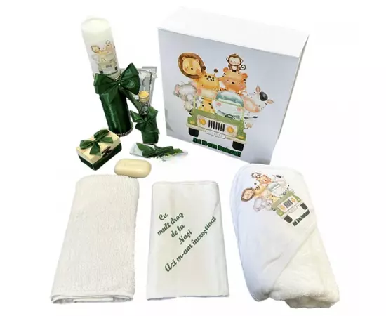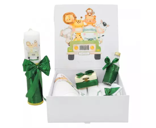 Set Cutie Trusou cu Lumanare, 9 Piese "Cu drag de la nasi" - Safari, Verde - TB202