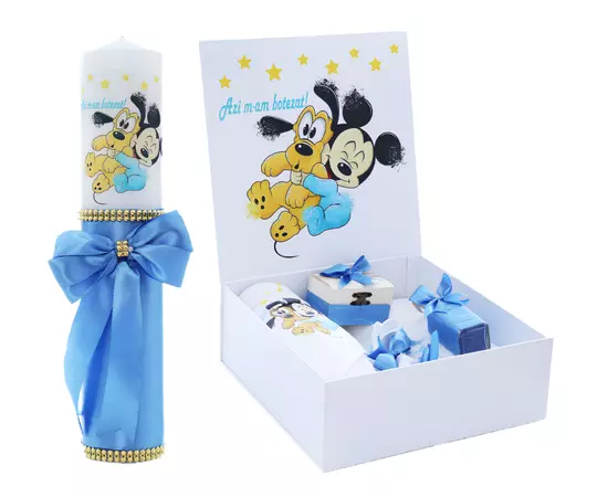 Set Cutie Trusou cu Lumanare, 9 Piese, "Azi m-am botezat", Bleu, Mickey Mouse - TB192
