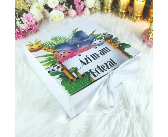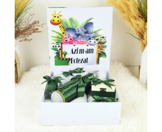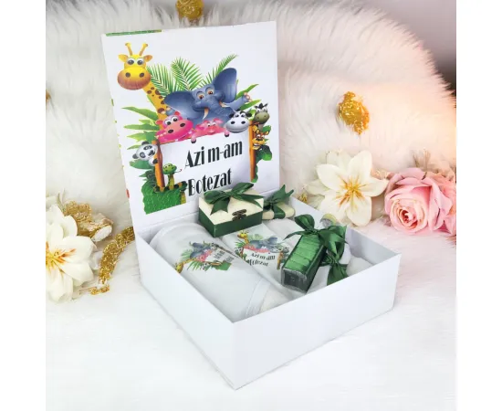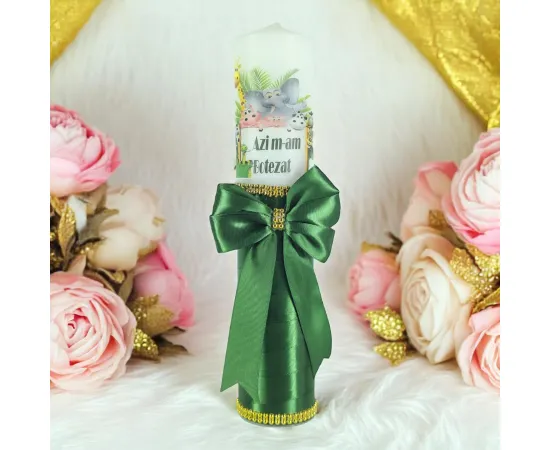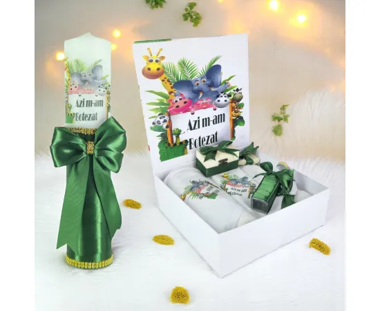 Set Cutie Trusou cu Lumanare, 9 Piese, "Azi m-am Botezat", Verde Safari Animale - TB260