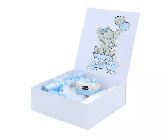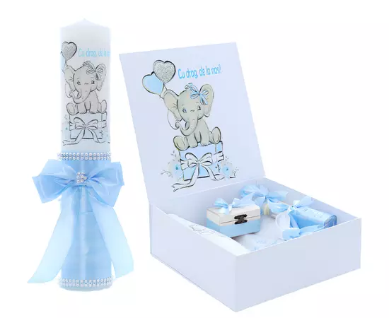 Set Cutie Trusou cu Lumanare, 9 Piese, "Cu drag de la nasi", Bleu, Elefant - TB195
