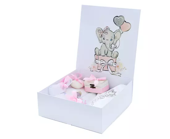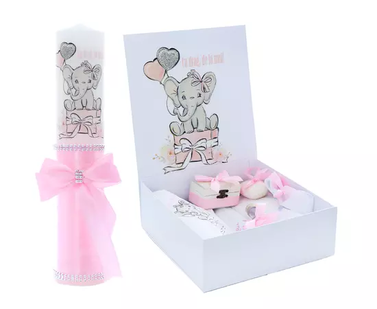 Set Cutie Trusou cu Lumanare, 9 Piese, "Cu Drag De La Nasi", Roz, Elefant - TB197
