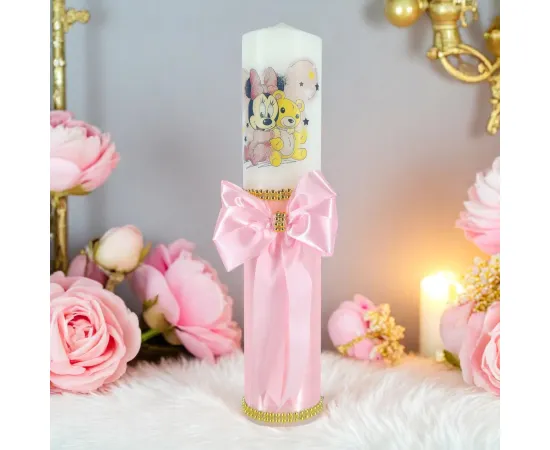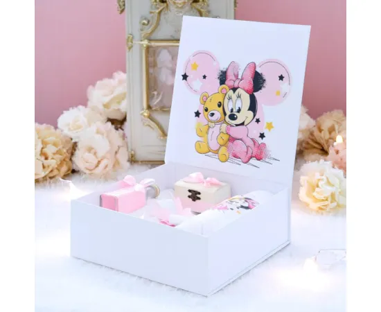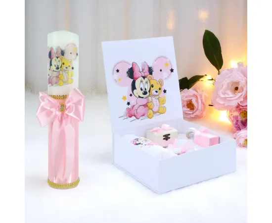 Set Cutie Trusou cu Lumanare, 9 Piese, "Cu drag de la nasi", Roz Aprins, Minnie Mouse - TB196