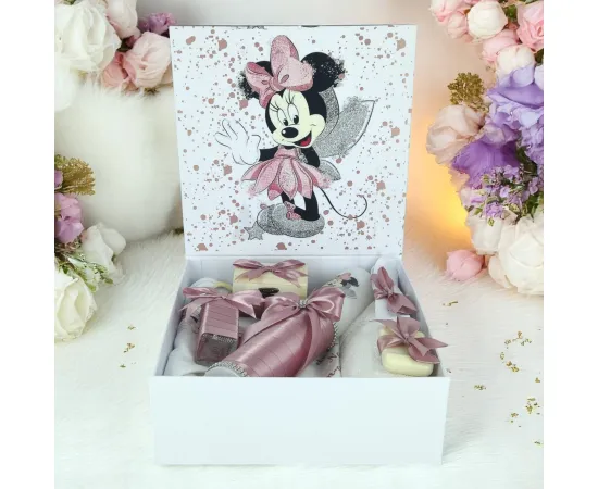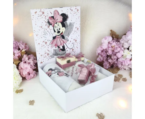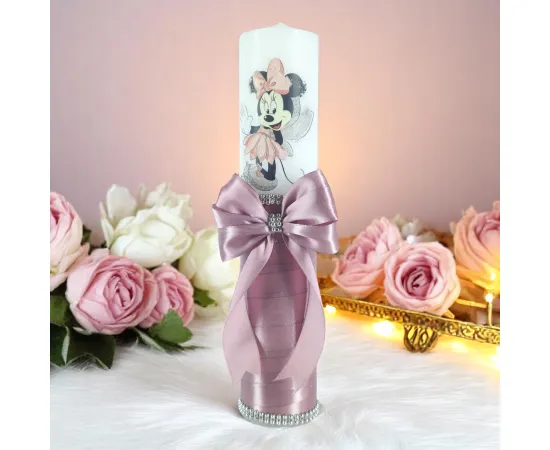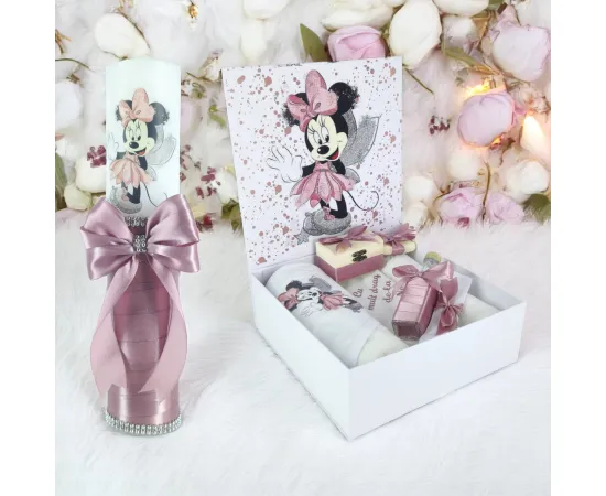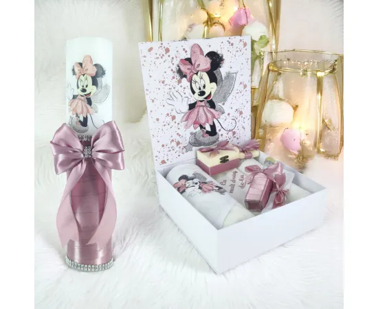 Set Cutie Trusou cu Lumanare, 9 Piese, "Cu drag de la nasi", Roz Pudra, Minnie Mouse - TB259