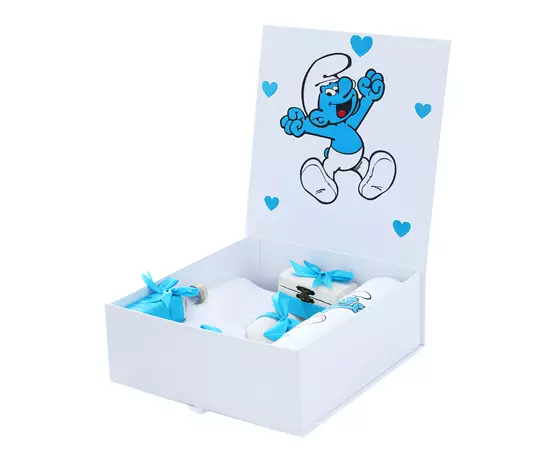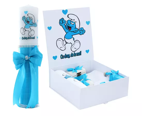 Set Cutie Trusou cu Lumanare, 9 Piese, "Cu drag de la nasi", Turcoaz, Strumf - TB189